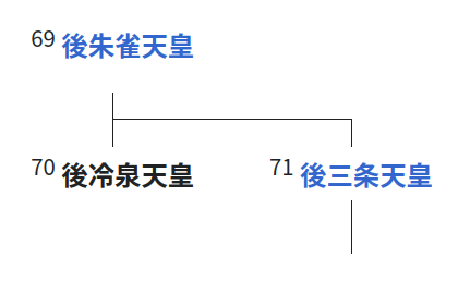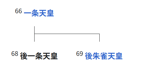 上が後一条天皇、下が後冷泉天皇の家系図。どちらも弟である後朱雀天皇と後三条天皇の方に系譜が引かれてるのが分かるかと。